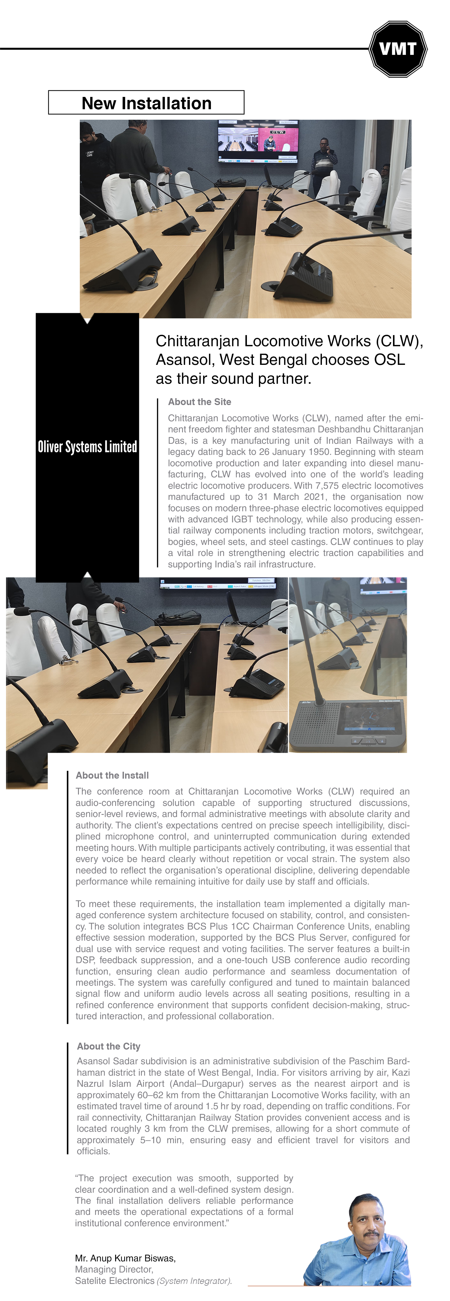Chittaranjan Locomotive Works (CLW), Asansol, West Bengal chooses OSL as their sound partner.