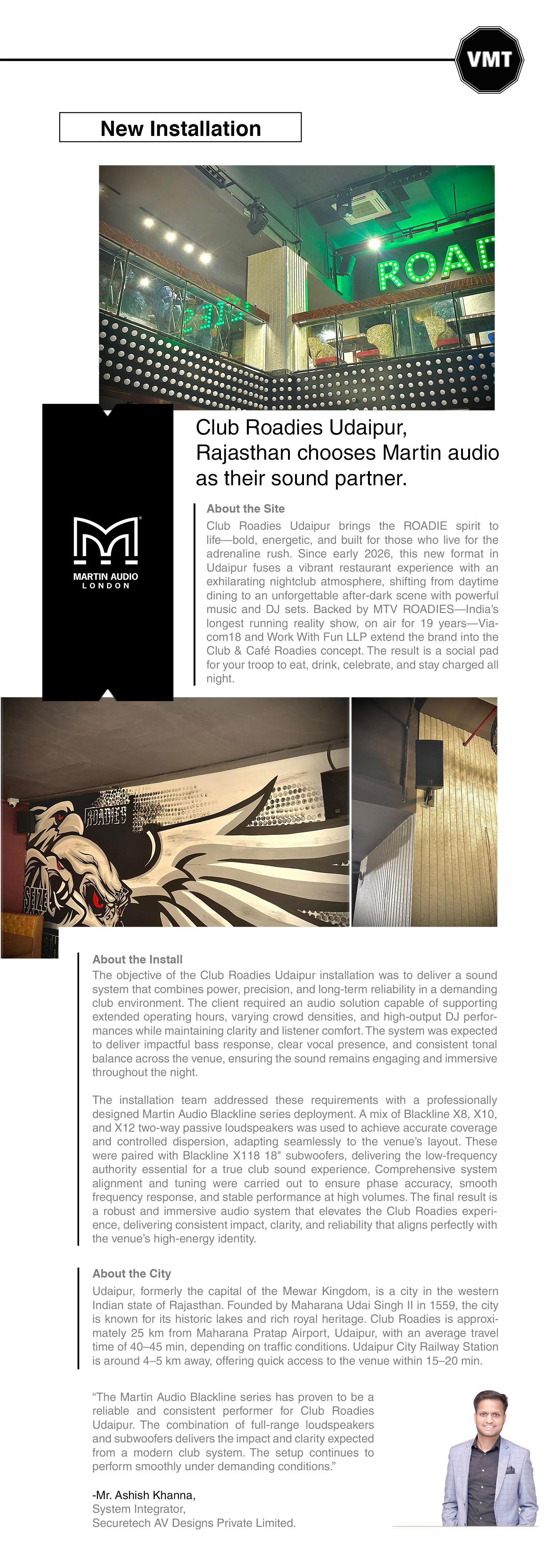 Club Roadies Udaipur, Rajasthan chooses Martin audio as their sound partner. Posted on January 6, 2026 by Vardhaman