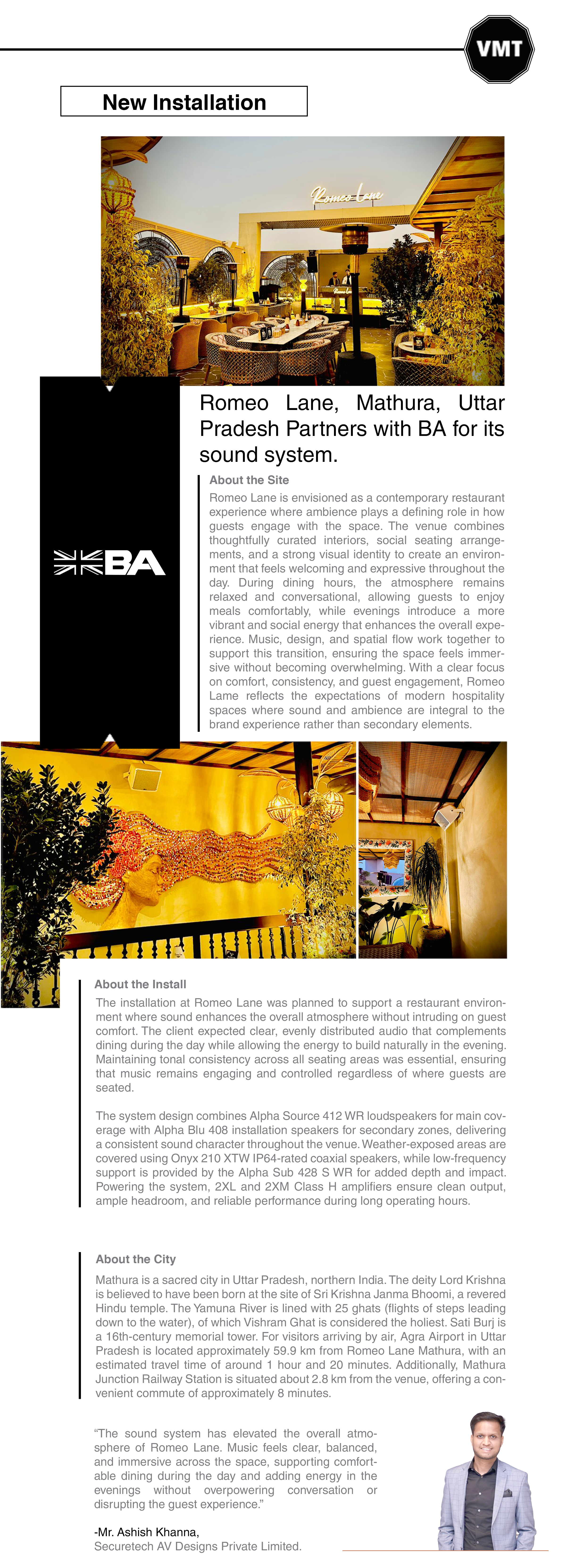 Romeo Lane, Mathura, Uttar Pradesh Partners with BA for its sound system. Posted on January 31, 2026January 31, 2026 by Vardhaman